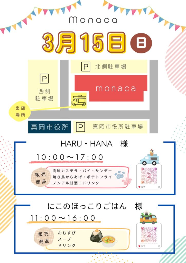 3月15日(日) 出店&キッチンカー情報