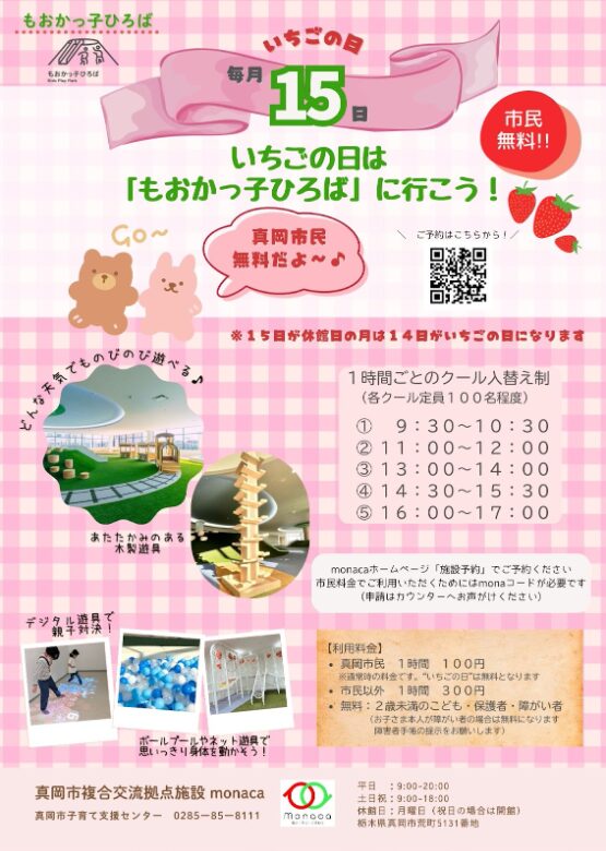 真岡市民のお子さまは、もおかっ子ひろばが無料でご利用できます。