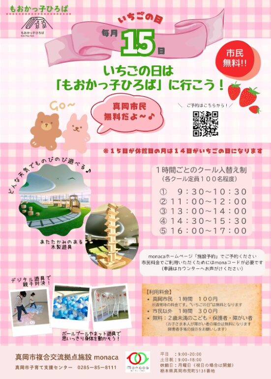 真岡市民のお子さまは、もおかっ子ひろばが無料でご利用できます。