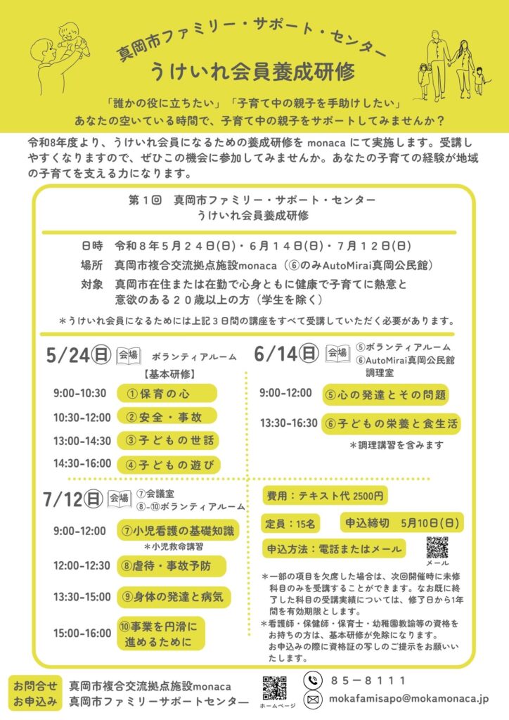 うけいれ会員への養成研修がmonacaで受講できます!
