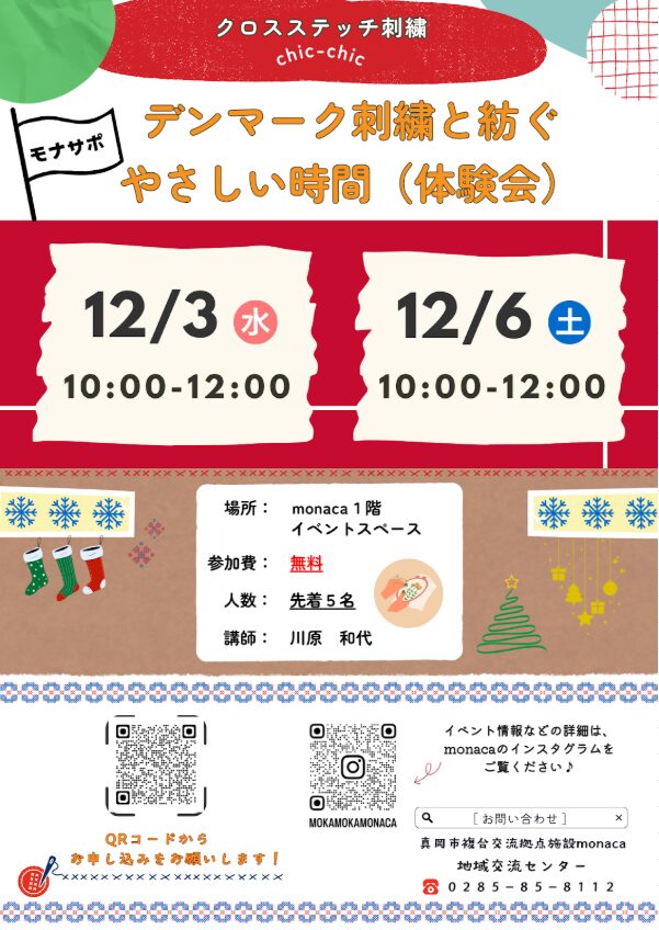12月3日(水) モナサポ デンマーク刺繡と紡ぐやさしい時間「体験会」