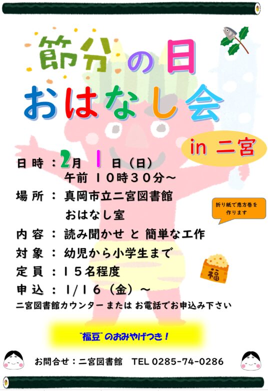 ホーム » イベント » 2月1日(日) 節分の日おはなし会 in 二宮