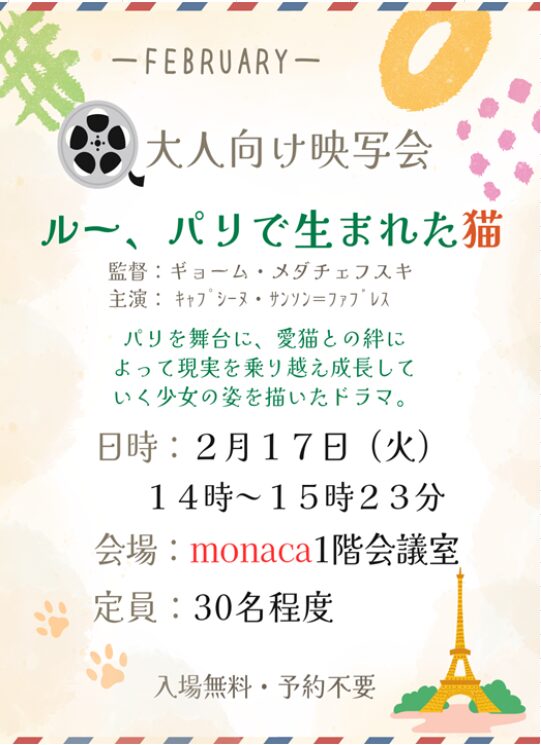 上映作品:「ルー、パリで生まれた猫」※上映時間83分