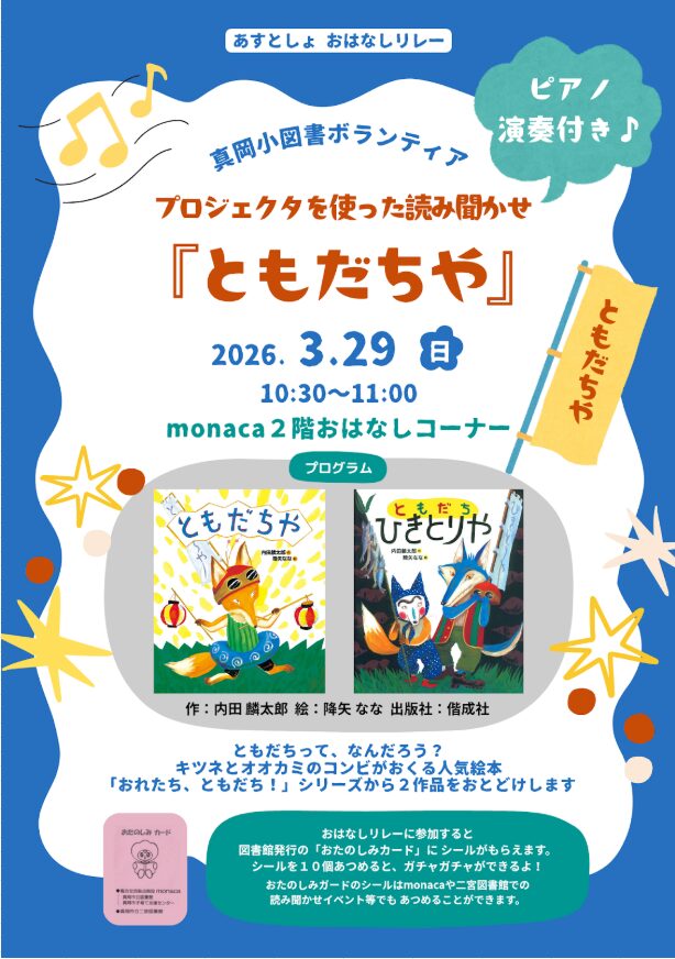 ホーム » イベント » 3月29日(日) あすとしょおはなしリレー