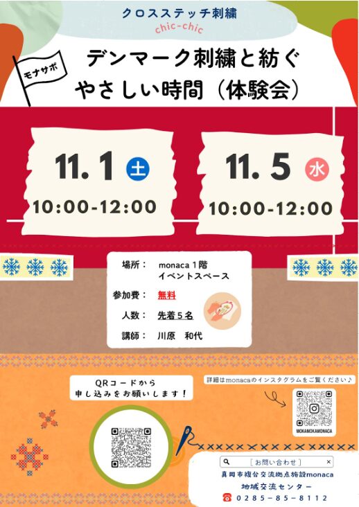 ホーム » イベント » 11月5日(水) モナサポ デンマーク刺繡と紡ぐやさしい時間「体験会」