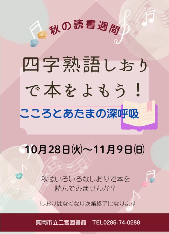 二宮図書館で本を借りて四字熟語しおりをもらおう!