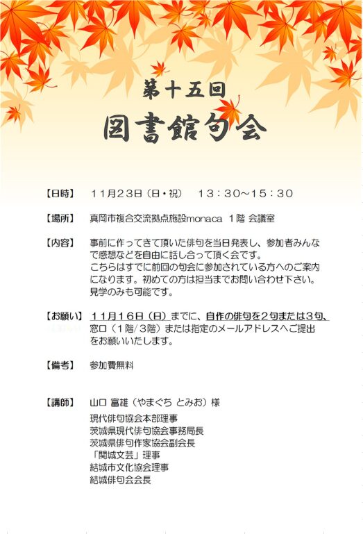 ホーム » イベント » 11月23日(日) 第15回図書館句会